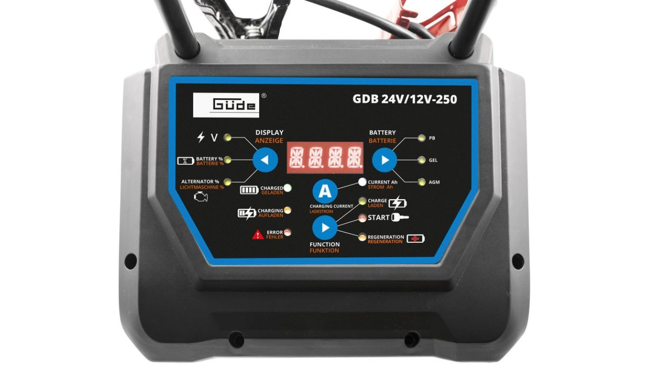 Ο φορτιστής μπαταρίας Güde GDB 24V / 12V-250 είναι ένας έξυπνος φορτιστής μπαταρίας που ελέγχεται από μικροεπεξεργαστή για όλους τους κοινούς τύπους μπαταριών οχημάτων.