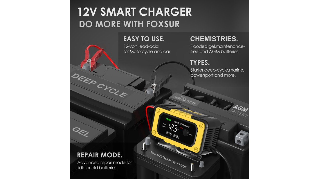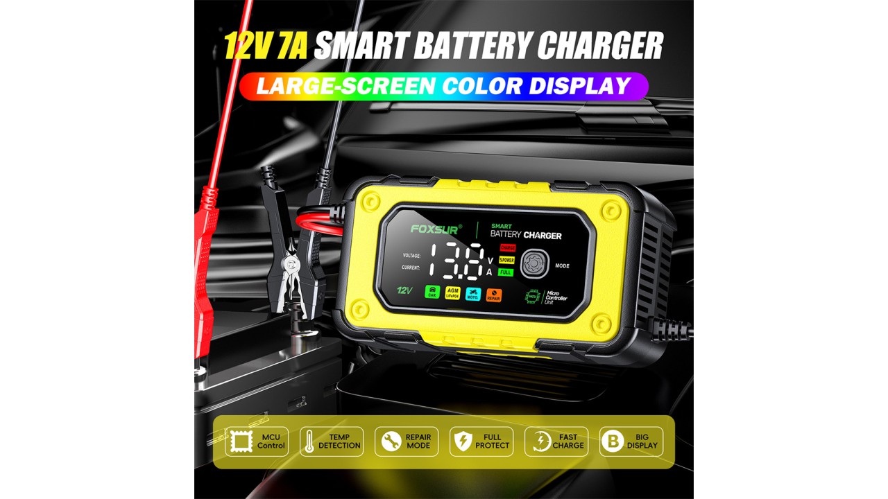 FOXSUR FBC1207E 12V/7A Έξυπνος φορτιστής μπαταριών αυτοκινήτου 7 σταδίων