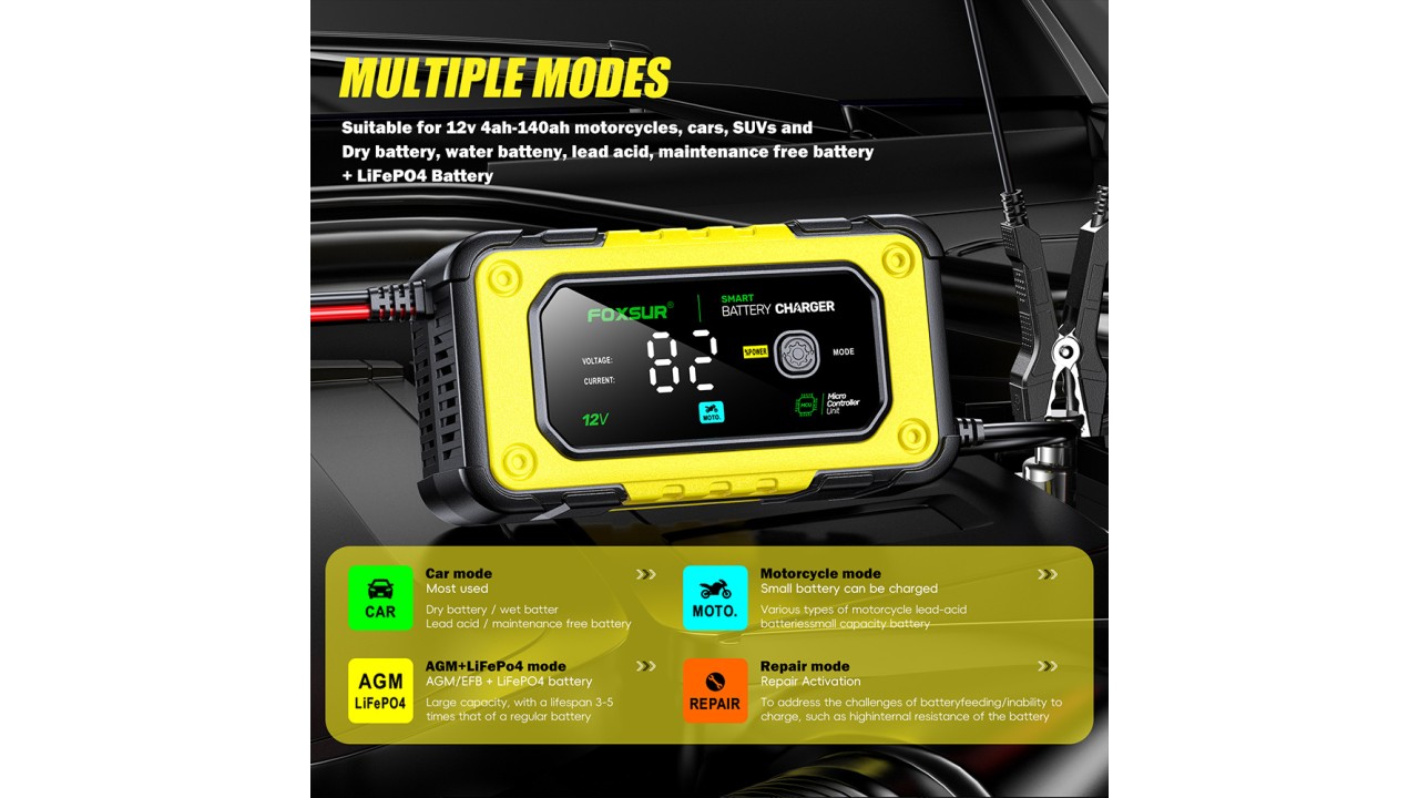 - ΑΥΤΟΜΑΤΗ ΦΟΡΤΙΣΗ 7 ΣΤΑΔΙΩΝ: Αυτός είναι ένας πλήρως αυτόματος φορτιστής μπαταρίας με 7 στάδια φόρτισης.