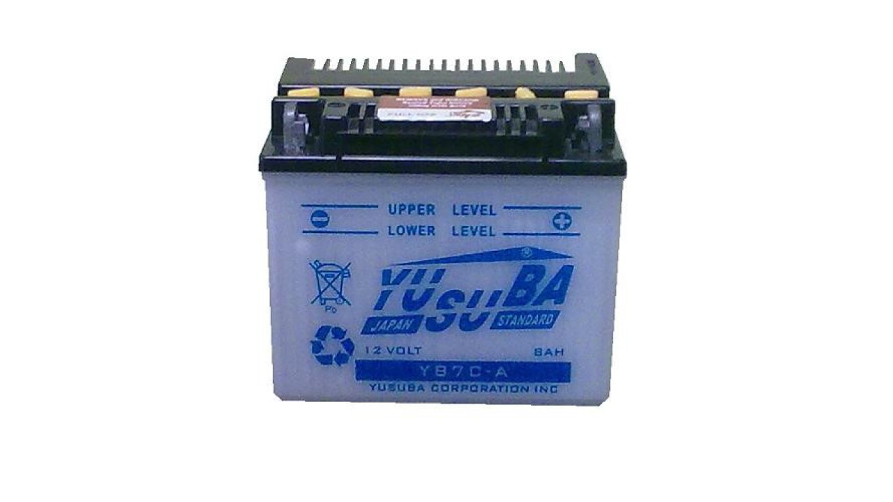 - Μπαταρία YB7C-A YUSUBA τεχνολογίας ανοιχτού τύπου με υγρά. Απαιτείται προετοιμασία.