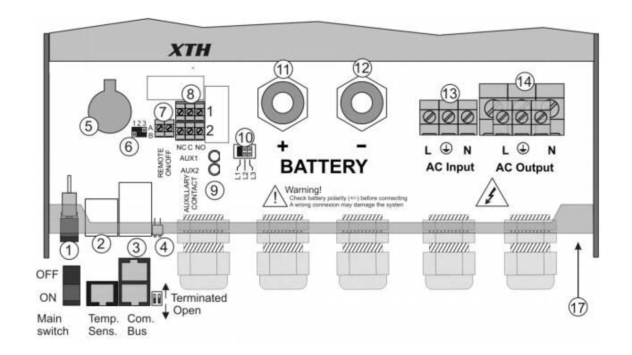 The Xtalent is equipped with a command entry and 2 configurable auiliary contacts. This allows automatic control of a genset or loadshedding when the battery voltage is too low. The flexibility obtained makes it possible to implement special functionalities, often necessary for good energy management In standalone systems.